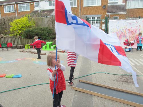 We decorated biscuits with the English flag, made red roses, made dragon masks and danced with red and white ribbons. We listened to the story of St George slaying the dragon and then acted this story out.
