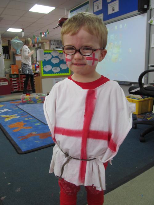 Everyone in school wore red and white clothing for the day and in Rainbow class we tried lots of different activities to find out more about why we celebrate St George's day.